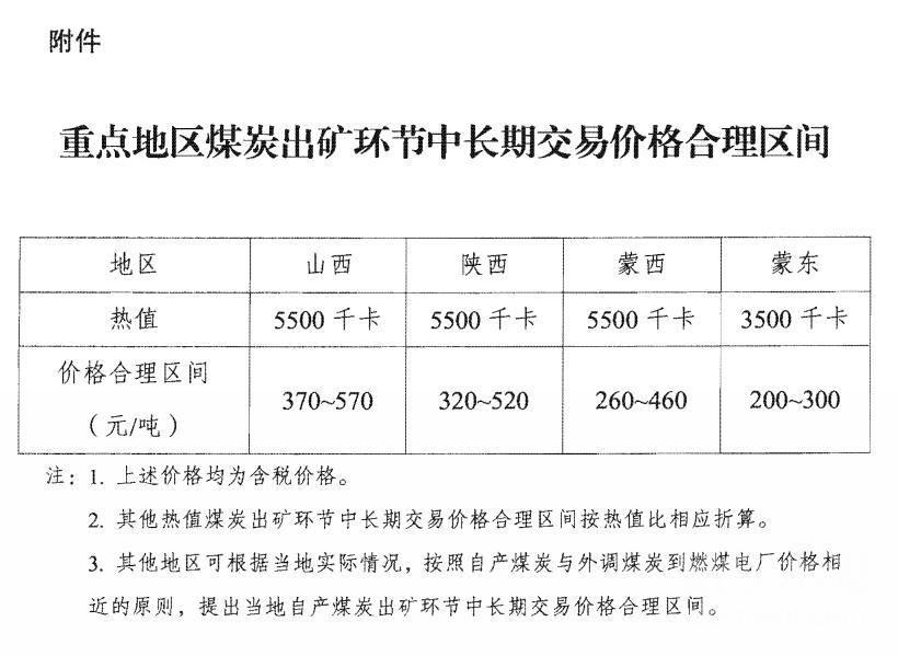 ??從多年市場運行情況看,近期階段秦皇島港下水煤(5500千卡)中長期交易價格每噸570~770元(含稅)較為合理(晉陜蒙相應煤炭出礦環節中長期交易價格合理區間見附件),煤炭生產、流通、消費能夠保持基本平穩,煤、電上下游產業能夠實現較好協同發展。適時對合理區間進行評估完善。