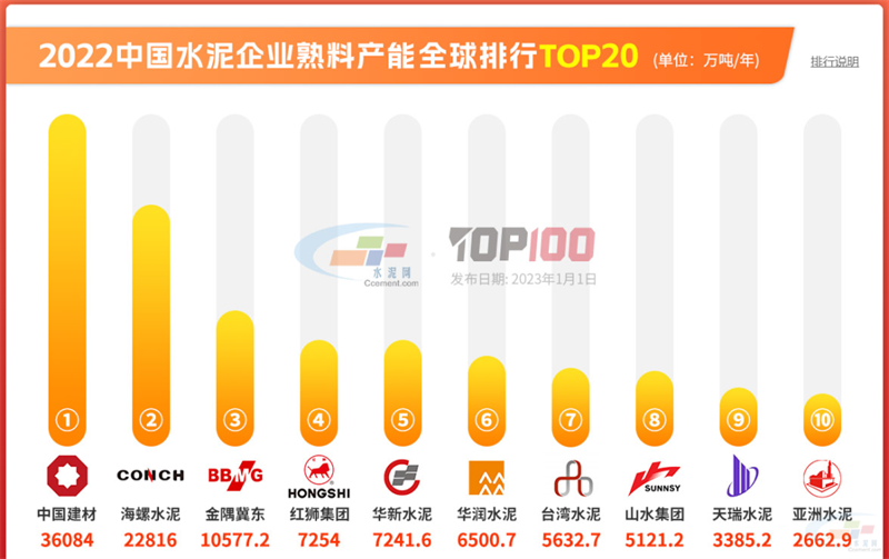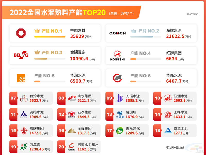 “2022全國水泥熟料產能百強榜:紅獅超越華潤、華新位列第四