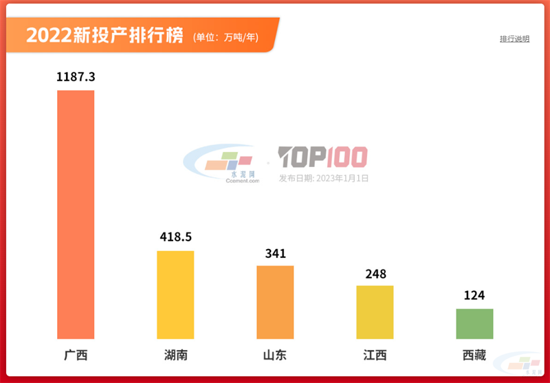 “2022新投產排行榜:全國新投產產能2318.8萬噸,廣西獨占1187.3萬噸高居榜首