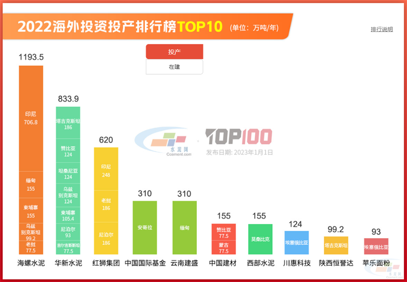 “2022全國水泥熟料產能百強榜前十生變,之前位列第六的紅獅集團,在2022年超越了華潤水泥和華新水泥,位列榜單第四