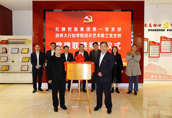浙江師范大學行知學院副院長黃凱聲、行知學院設計藝術學院院長夏盛品、靈洞鄉黨委副書記方振強、行知學院設計藝術學院教工黨員、紅獅集團蘭溪范圍內子公司黨員、紅獅海外支部黨員(視頻)共計164人參加。